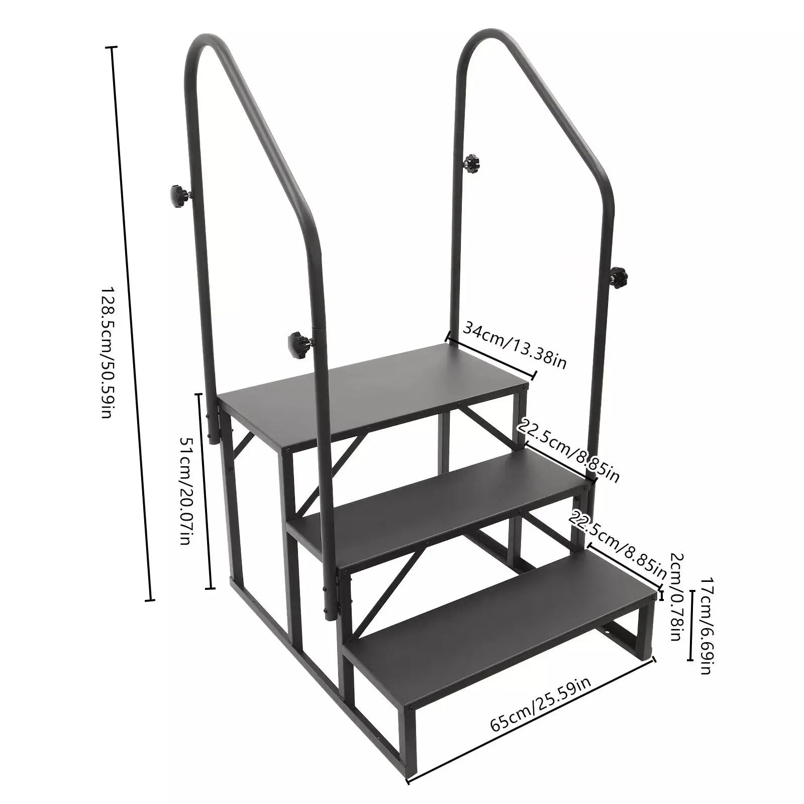 - Three secure, slip-resistant steps provide stable footing on uneven or wet surfaces, with a wide tread design that reduces fatigue during your entry and exit.