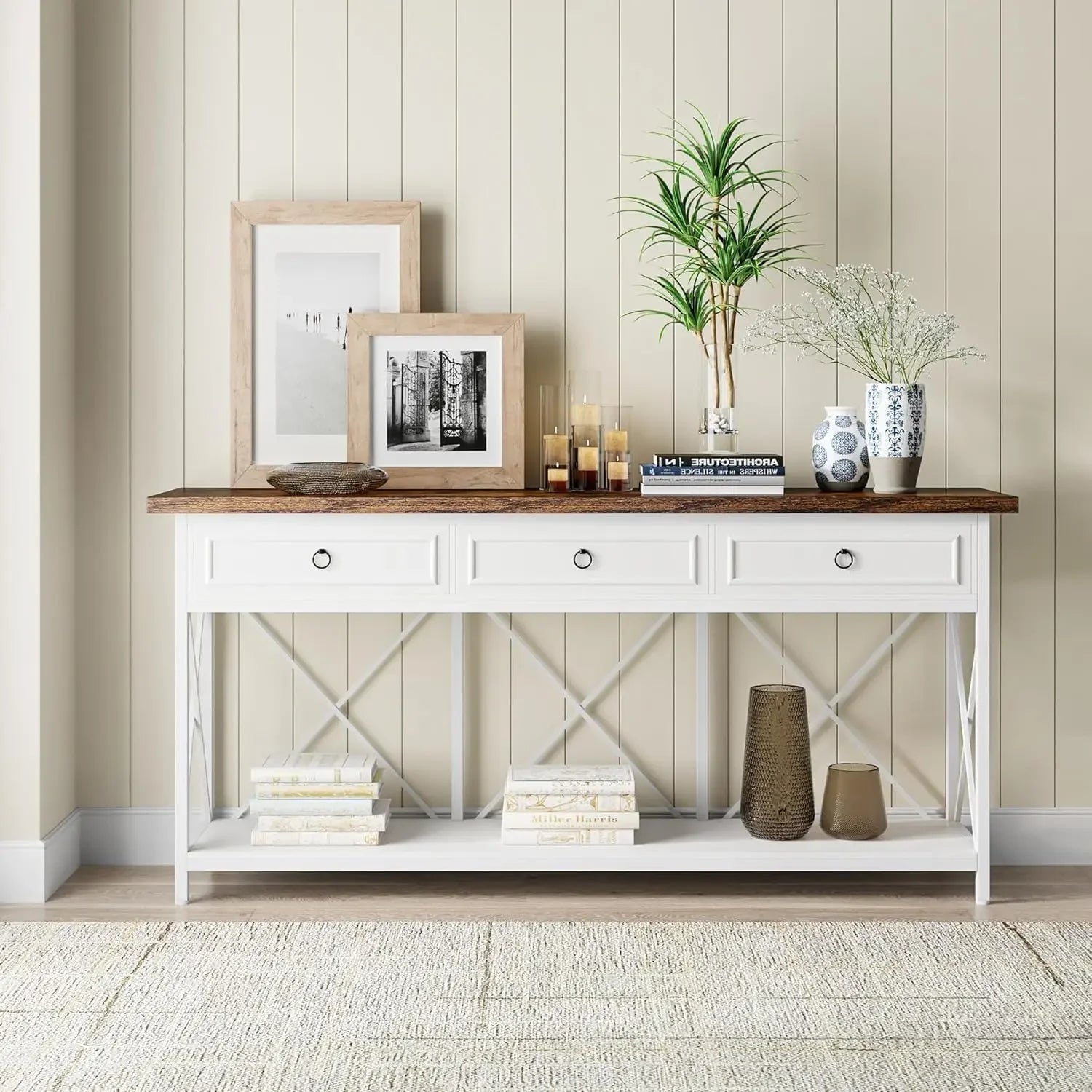 XMSJ Farmhouse Console Table With 3 Drawers Storage