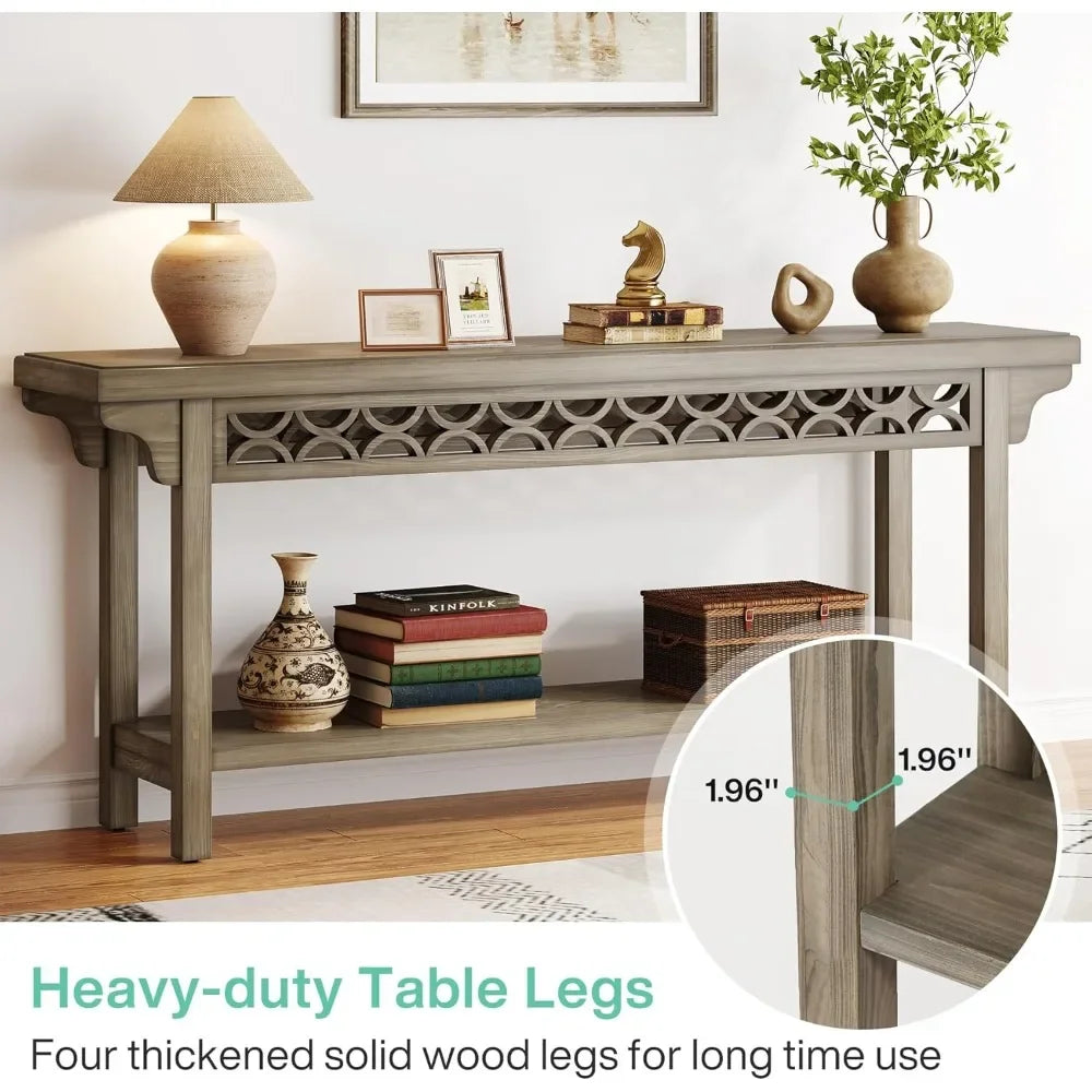 Bring rustic charm and practical storage to your entryway or living room with the 70.8 Inch Solid Wood Long Console Table — a farmhouse-style, narrow sofa table designed to blend timeless form with everyday function. Finished in a versatile grey, this slim yet substantial piece fits behind sofas, along hallways, or beneath windows where space is at a premium.