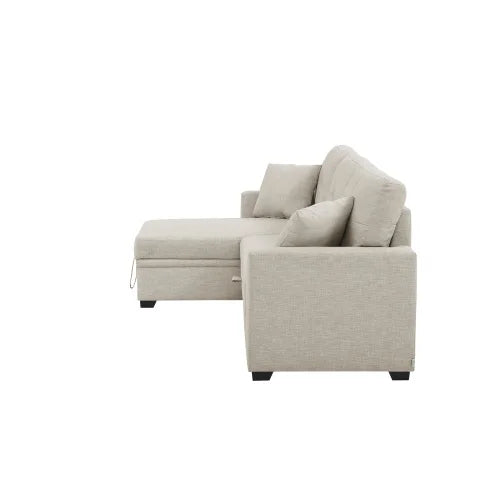 Quick details: Modern L-shaped living room sofa • 83" wide pull-out bed • Includes two pillows • Assembly required • Origin: Mainland China.