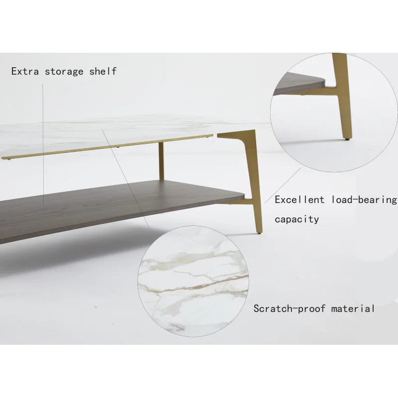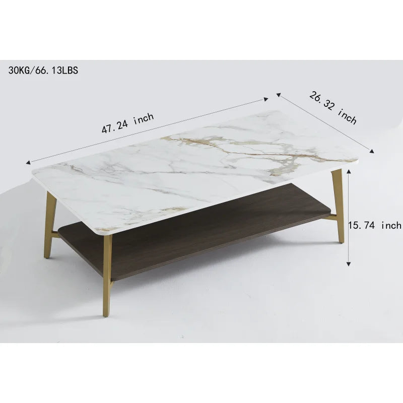 Coffee Table Rectangular Center Table for Living Room combines clean modern lines with smart functionality — an elegant centerpiece that keeps your living space open, organized and stylish. The sturdy metal frame and roomy rectangular top deliver everyday durability while the open-space lower shelf creates practical storage without sacrificing a light, airy look.