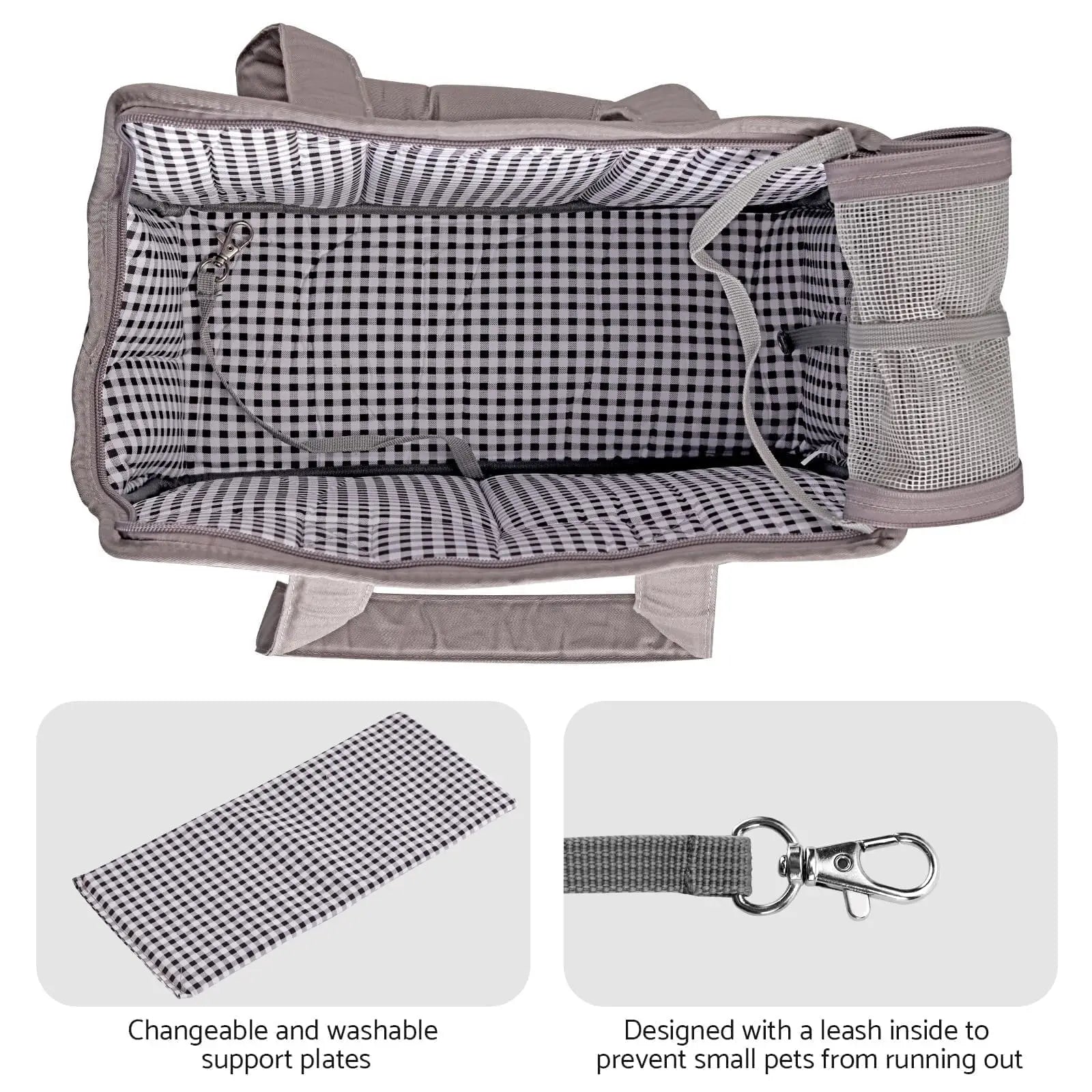 - A built-in safety leash secures your pet in place, while a durable zipper closes securely to prevent escapes on crowded trains, planes, or sidewalks.