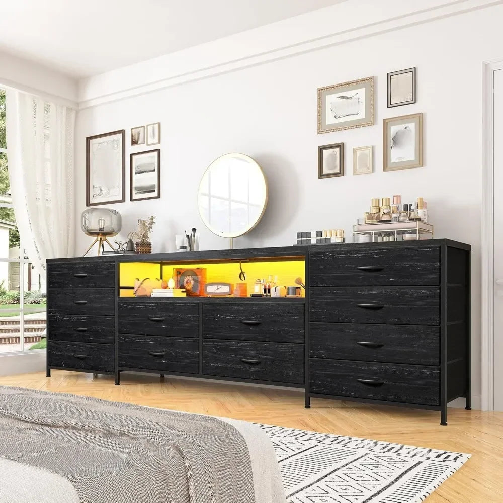 Functional design meets refined style — the combination of spacious storage, integrated power, and LED accents makes this dresser-turned-TV-stand a practical upgrade for anyone who wants to streamline their media setup without sacrificing aesthetics.