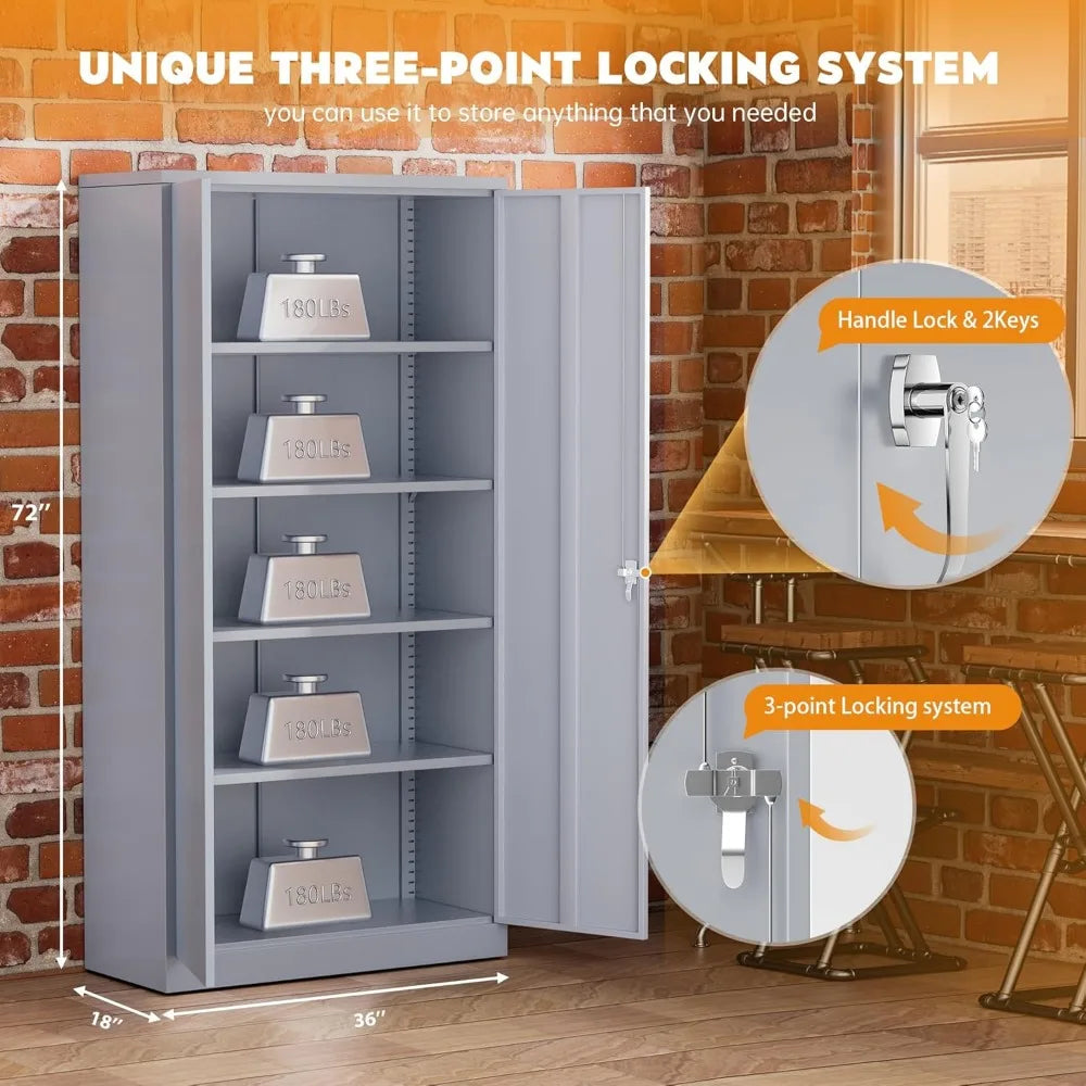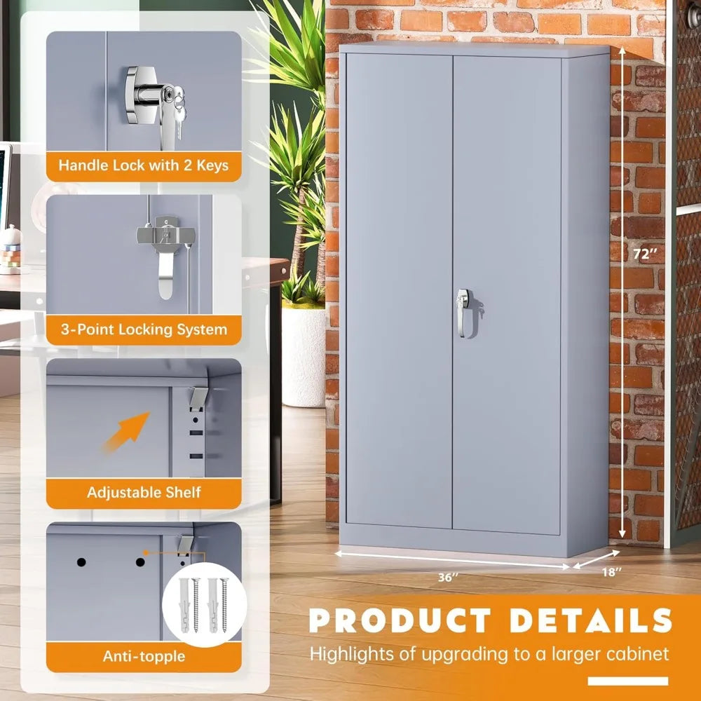 Organize your workspace with confidence. This 72" Metal Storage Cabinet combines heavy-duty tool steel construction with smart design—perfect for garages, workshops, offices, and commercial environments where secure, dependable storage matters.