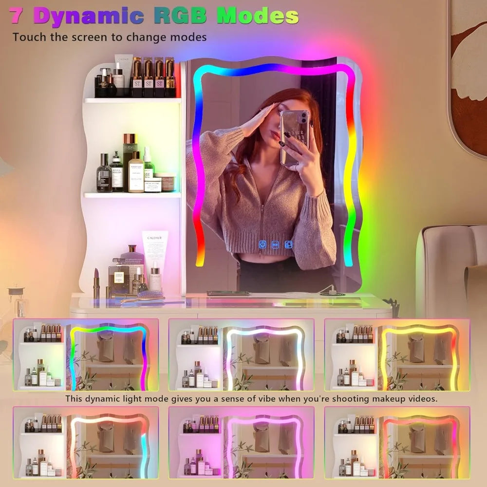 ZHUXIANG RGB Makeup Vanity Desk With Wireless Charging Station