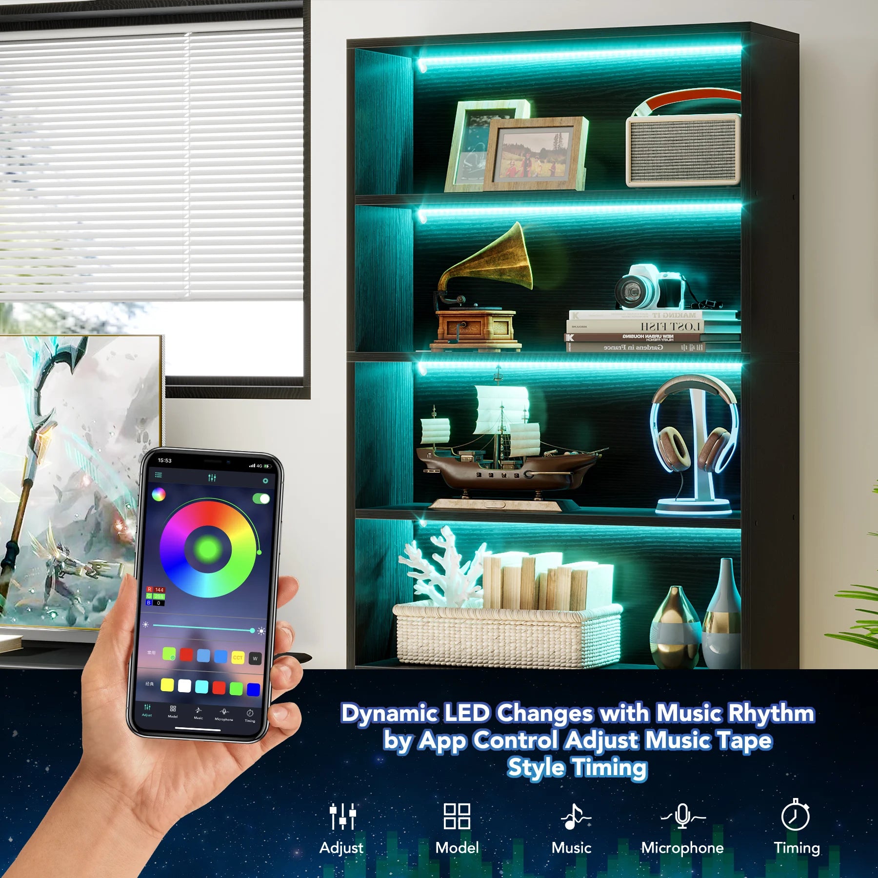 Tribesigns Tall Black Bookshelf 70.8 Inch Large Bookcase Organizer with LED Lights Heavy Duty Library Bookcase