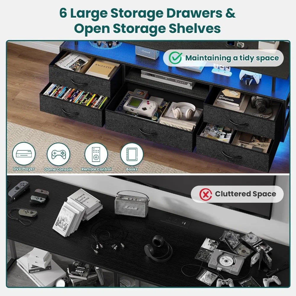 - Ample storage and clean cable management: a 51.2" L shelf plus 5 large PU fabric drawers keep media accessories, remotes, and books organized, with rear wire holes to hide cords.